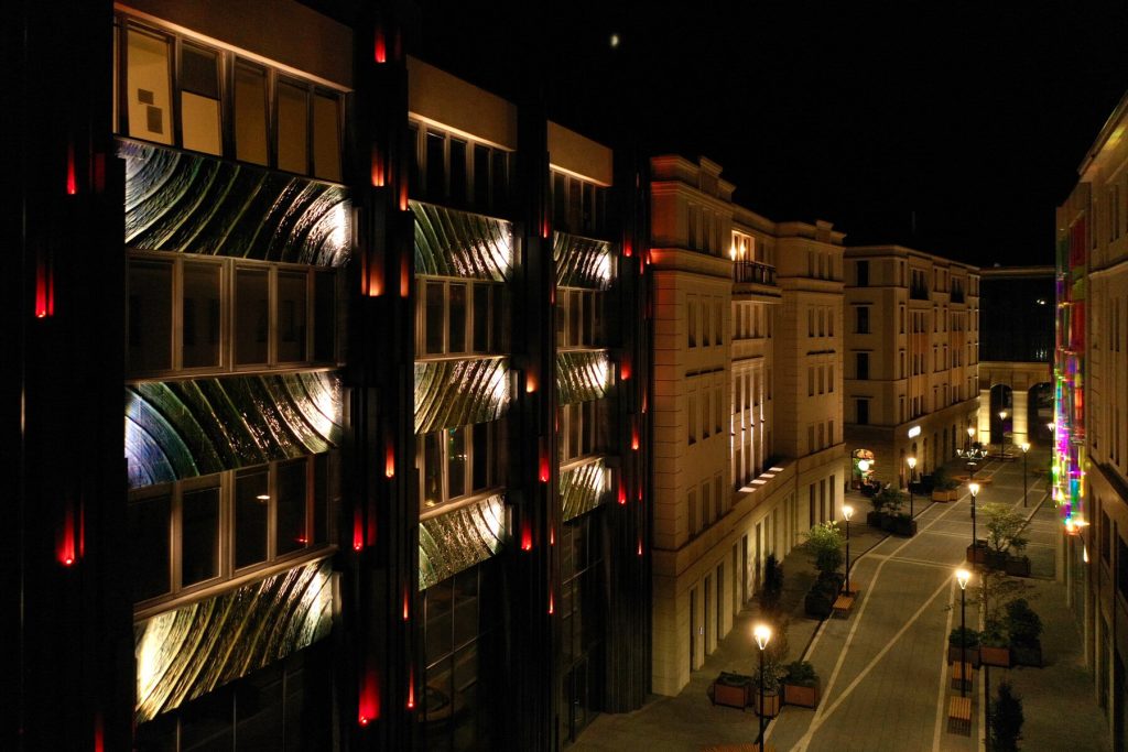A homlokzati fények különleges éjszakai látványt kölcsönöznek az épületeknek.