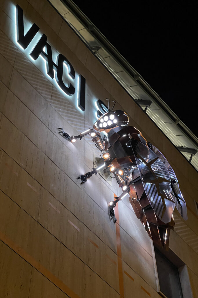 Speciális LED modulokat terveztünk a méhecske megvilágítására. Kültéri szobor révén fokozott figyelmet fordítottunk az UV állóságra. Az épületfelügyeleti rendszer végzi a fényerőszabályzást és a KI-BE…