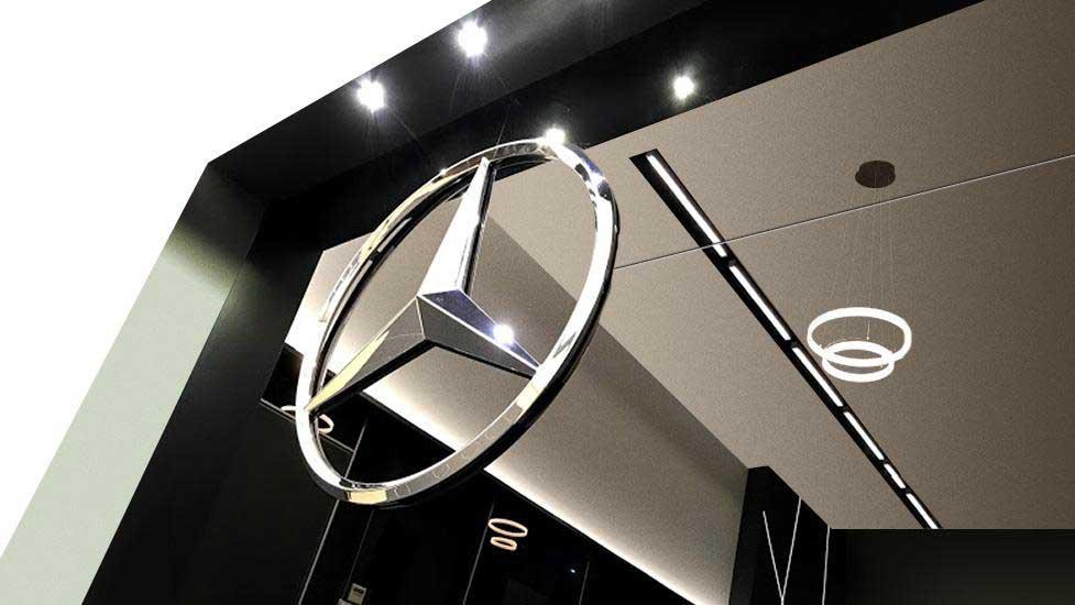 Egyedi vonalfények. Az átadó helyiség fekete falait modern stílusú vonalfények teszik még elegánsabbá. A helyiség vonalfény világításait cégünk készítette.