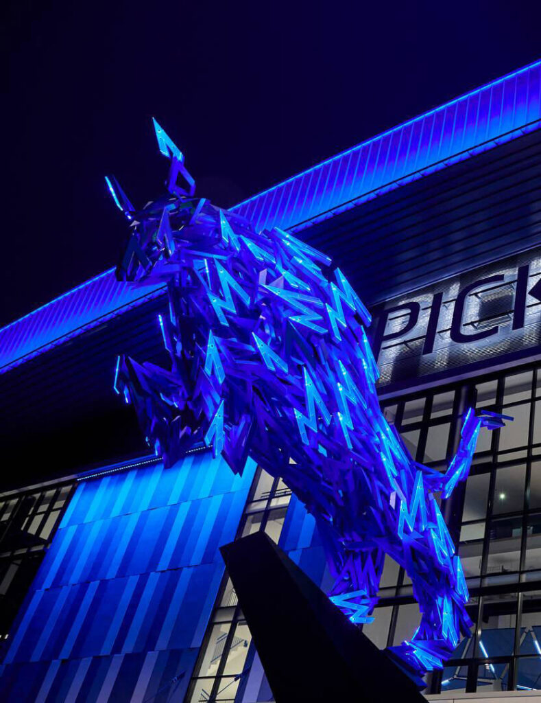 A szobor megvilágítását cégünk tervezte és gyártotta. A fényt RGBW Power LED-ek biztosítják, a fényjáték az épület felügyeleti rendszerével egyedileg programozható.
